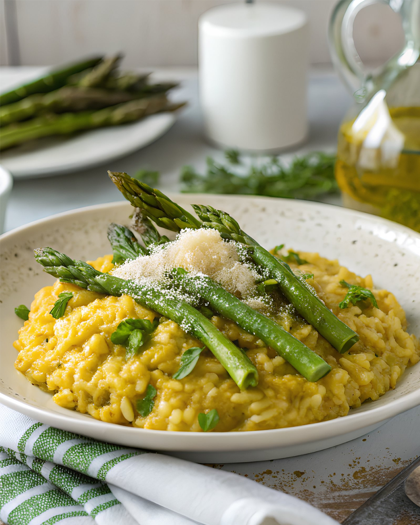 Un risotto agli asparagi cremoso e profumato, perfetto per celebrare la primavera a tavola: un classico della cucina italiana che valorizza uno degli ortaggi di stagione più amati.